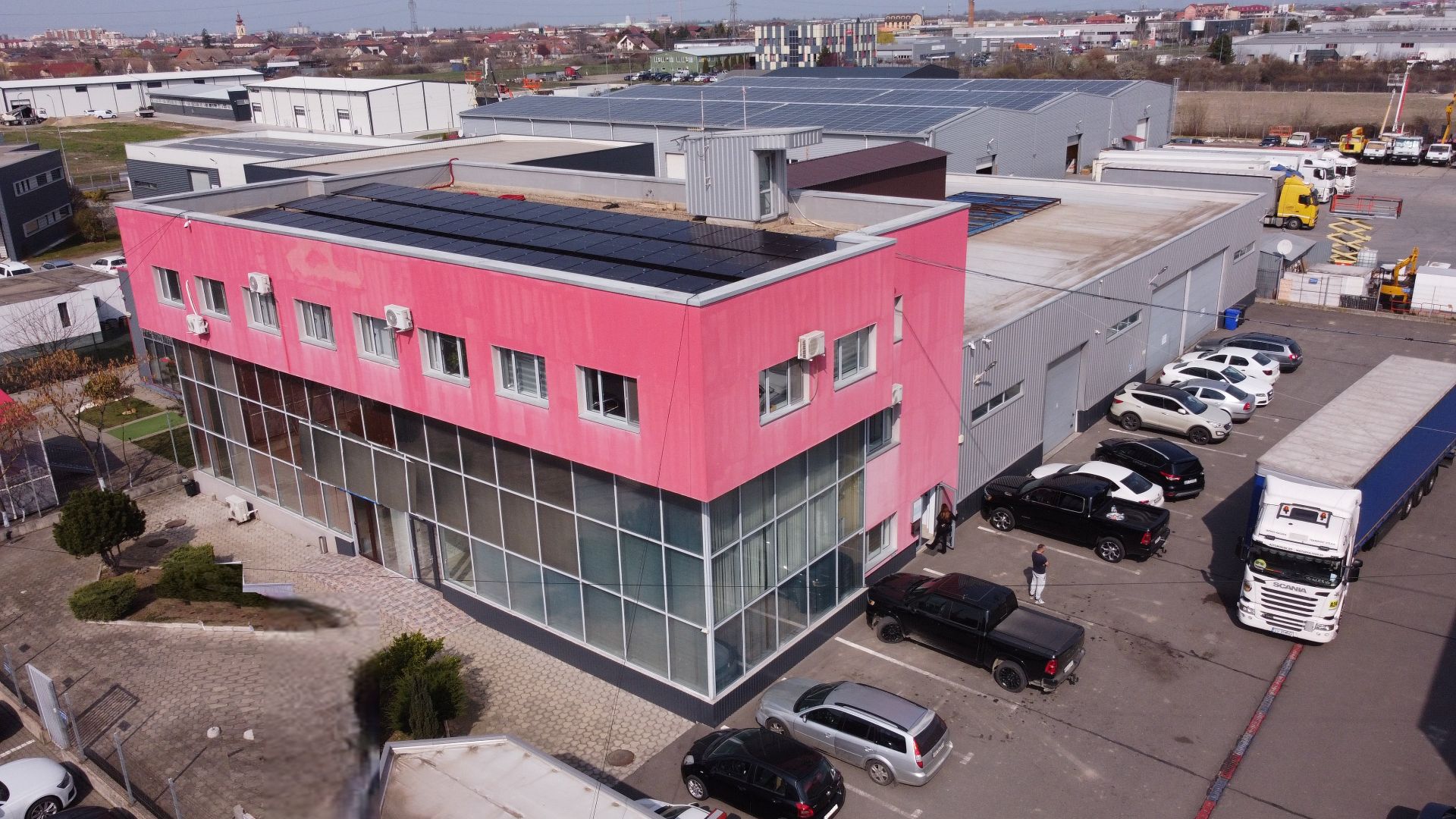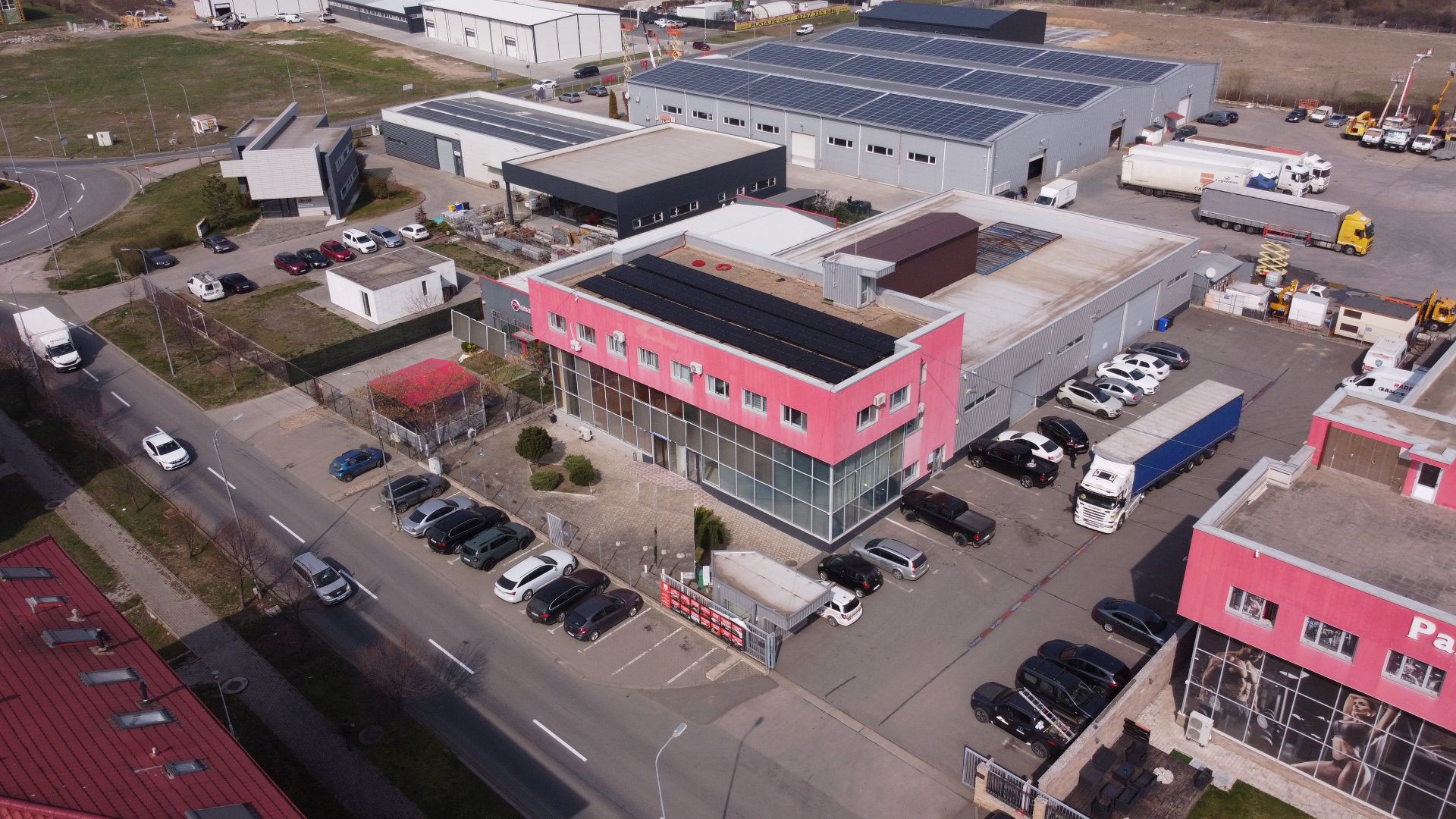 Spațiu industrial nou de închiriat în Timișoara, Zona Lugojului – Aeroport, cu suprafață utilă de 900 mp, compus din 500 mp hală și 400 mp birouri P+1E. Construcție modernă cu panouri termoizolante, pardoseală beton elicopterizat, sistem fotovoltaic, acces TIR drive-in și utilități complete. Poziționat strategic lângă DN6, Centura Nord și Autostradă.