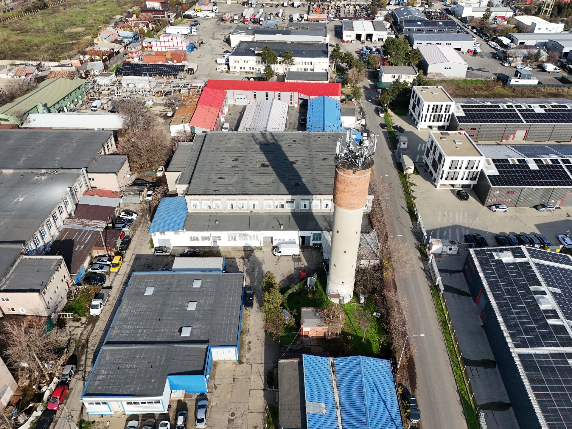 Zonă industrială cu străzi asfaltate și canalizare